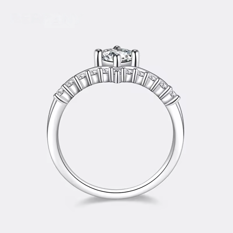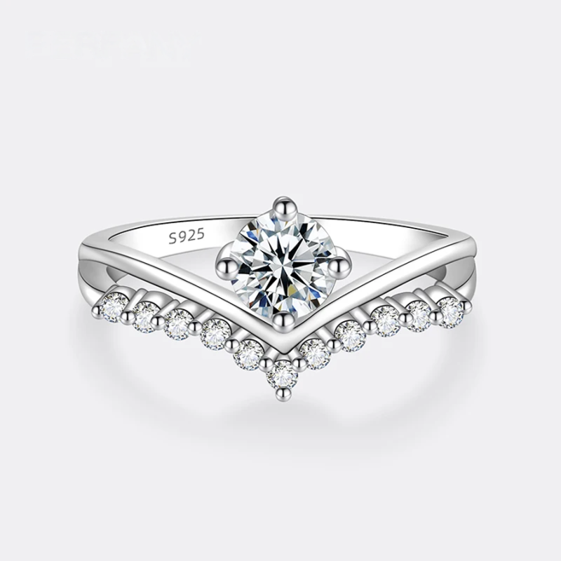 This elegant V-shaped ring features brilliant, 0.5CT Moissanite, a high-quality lab-cultivated diamond that is as pure and flawless as a natural stone, representing love. The band is crafted from durable S925 Pure Sterling Silver, which contains 92.5% silver and is completely safe and popular as fine jewelry. The design features a secure Prong Setting, a noble, gorgeous style where each claw firmly holds the diamond.