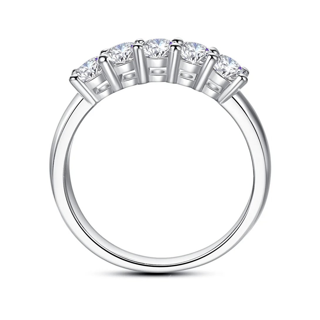 Ready to say 'I do' to undeniable brilliance? Add this luxurious 5-stone moissanite band to your collection and wear your everlasting love today.