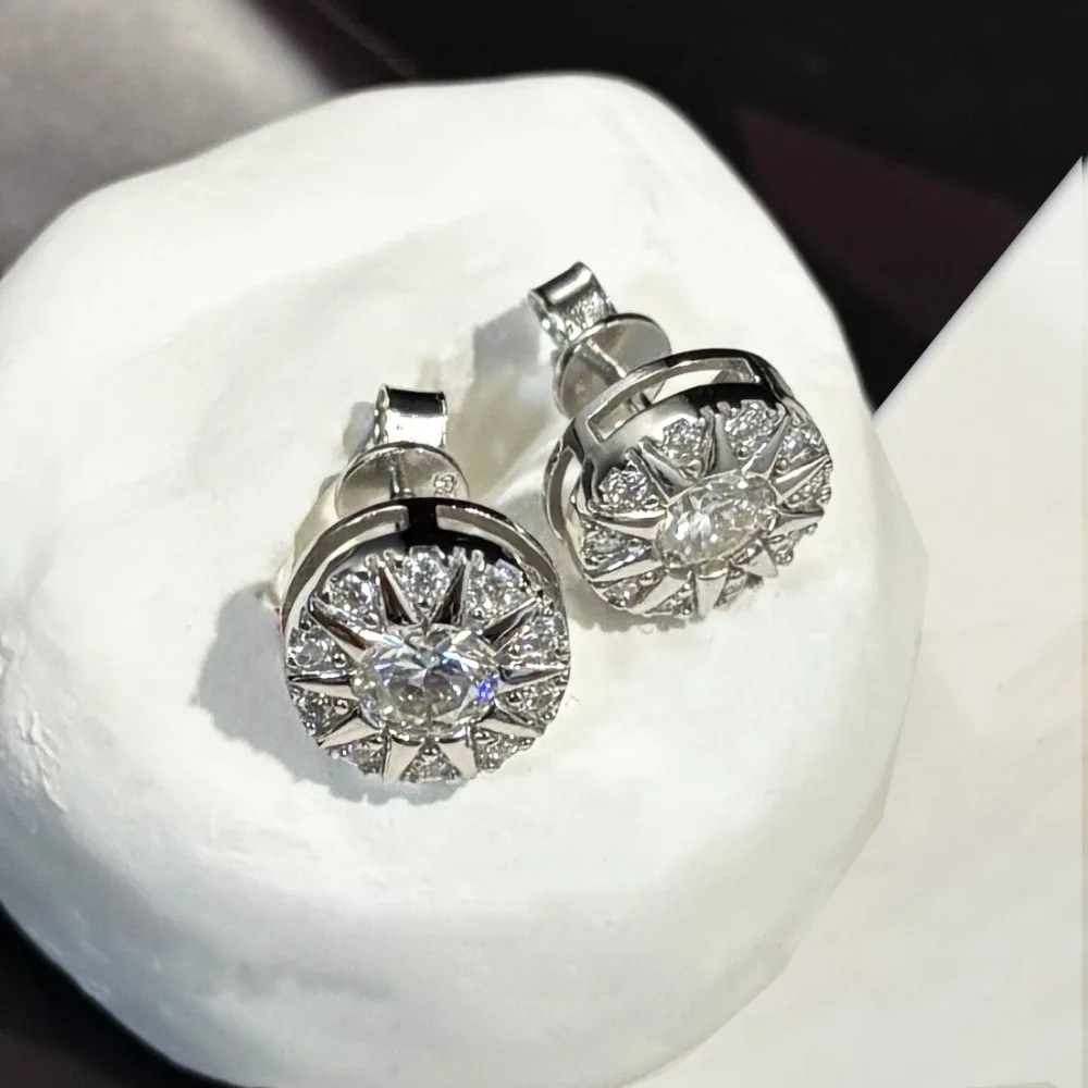 These stunning Cluster Stud Earrings deliver serious sparkle, featuring multiple brilliant D Color Moissanite stones that create the look of a much larger diamond. Crafted from strong 925 Sterling Silver, they are perfect for versatile wear, from a wedding party to a sharp daily look, for both men and women who love a bold, bright style.