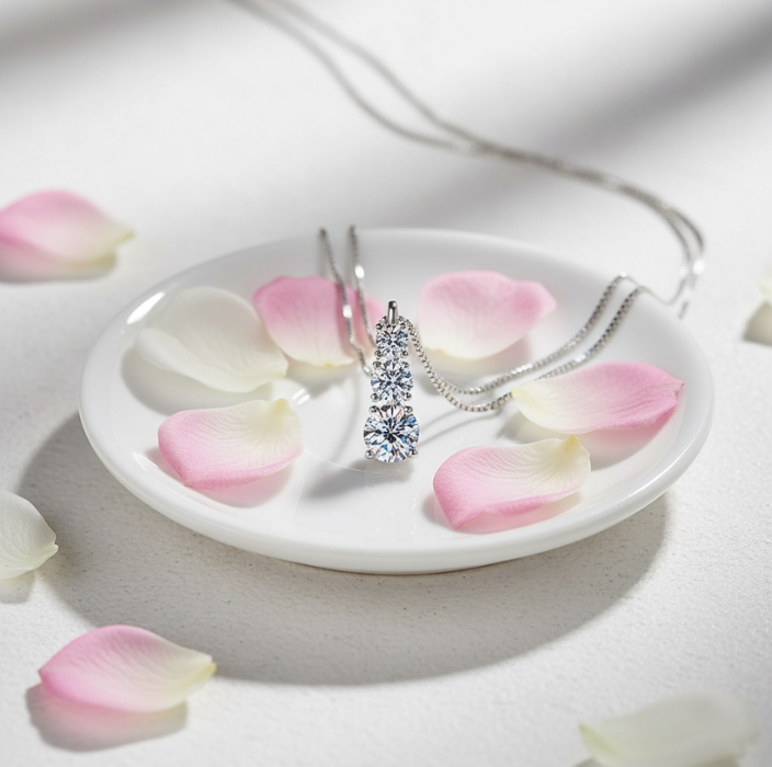 Radiate pure brilliance with our D VVS1 Moissanite Diamond Necklace, designed for women who love timeless beauty and refined sparkle. Expertly crafted from 925 sterling silver plated in 18K white gold, this piece showcases D color, VVS1 clarity Moissanite stones, known for their fire, clarity, and diamond-like brilliance.
