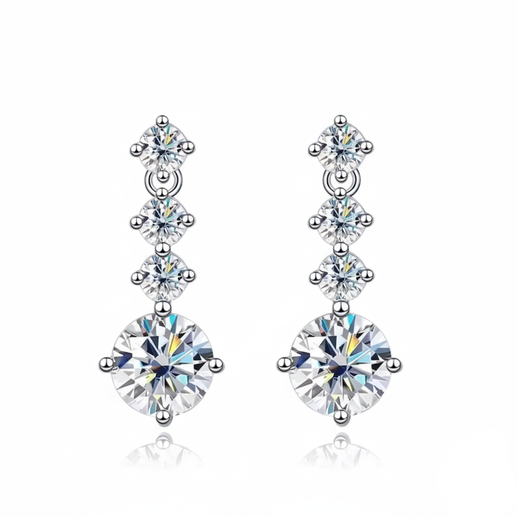 Crafted with genuine moissanite and 925 sterling silver, these earrings radiate brilliance from every angle. Their diamond-like sparkle and timeless elegance make them the perfect statement for any special occasion.