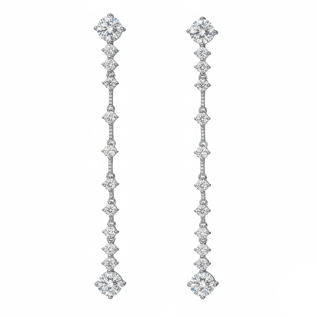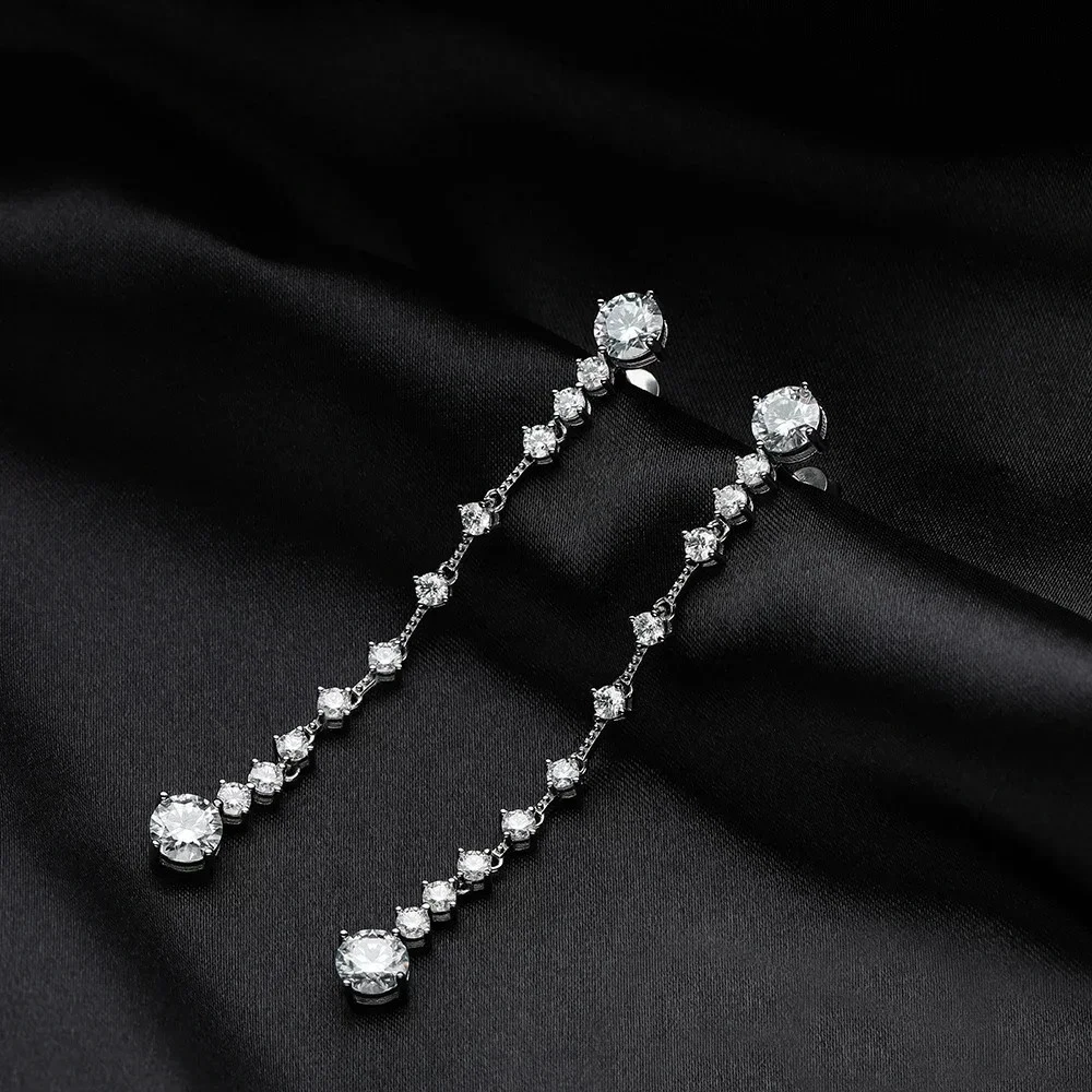 Handcrafted with fine 925 sterling silver and brilliant D color moissanite, these drop earrings glow with every movement. Designed for brides and dreamers, they bring timeless romance to your most beautiful moments.