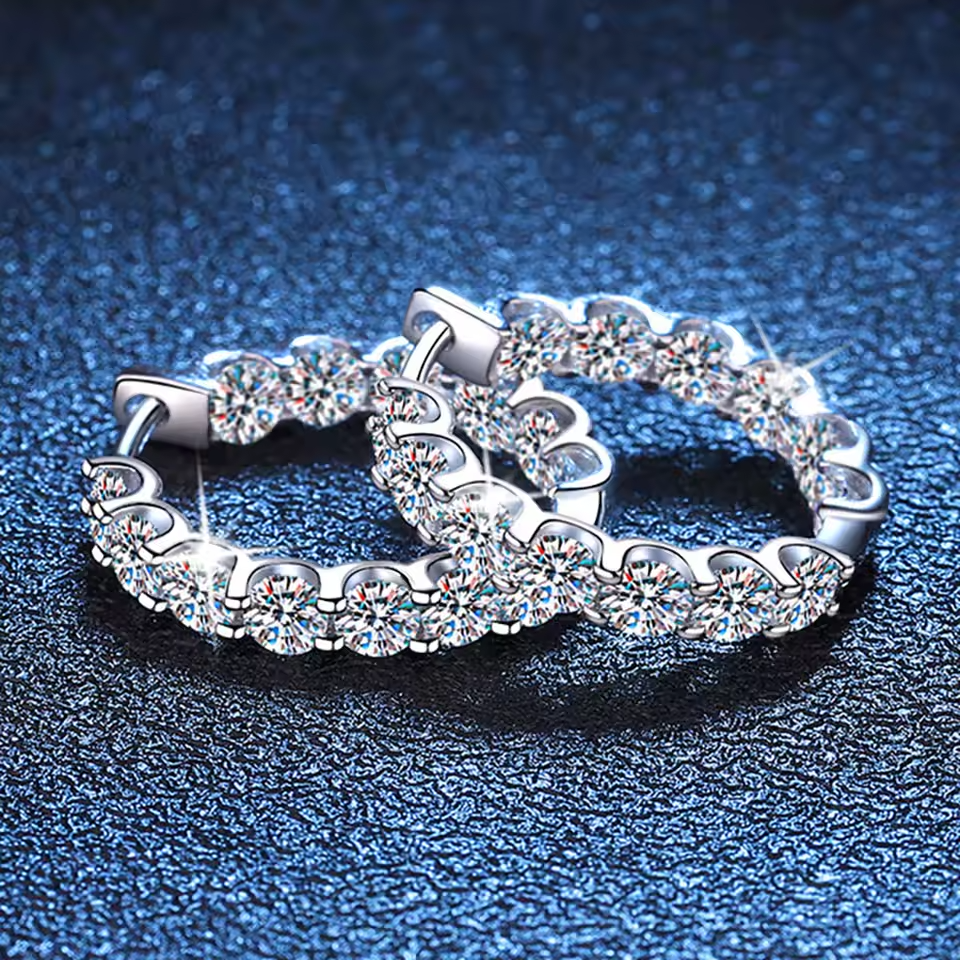 Bring timeless sparkle and sophistication into your jewelry box. Add these brilliant Moissanite hoop earrings to your collection today and shine with every move!