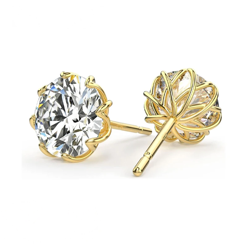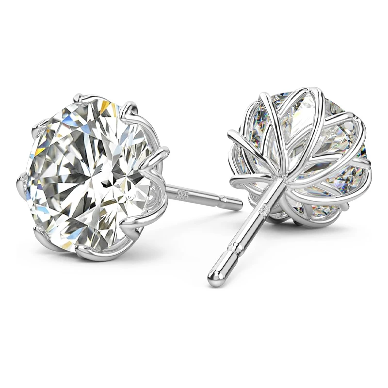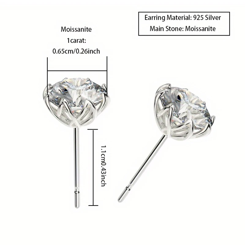 These gorgeous earrings feature a total of 2 carats of brilliant D Color VVS1 Moissanite, framed by a unique octagonal petal design that maximizes light reflection. Crafted from genuine 925 Sterling Silver and available in silver or gold tones, they offer a durable, comfortable fit and an incredible, high-grade look that never goes out of style.