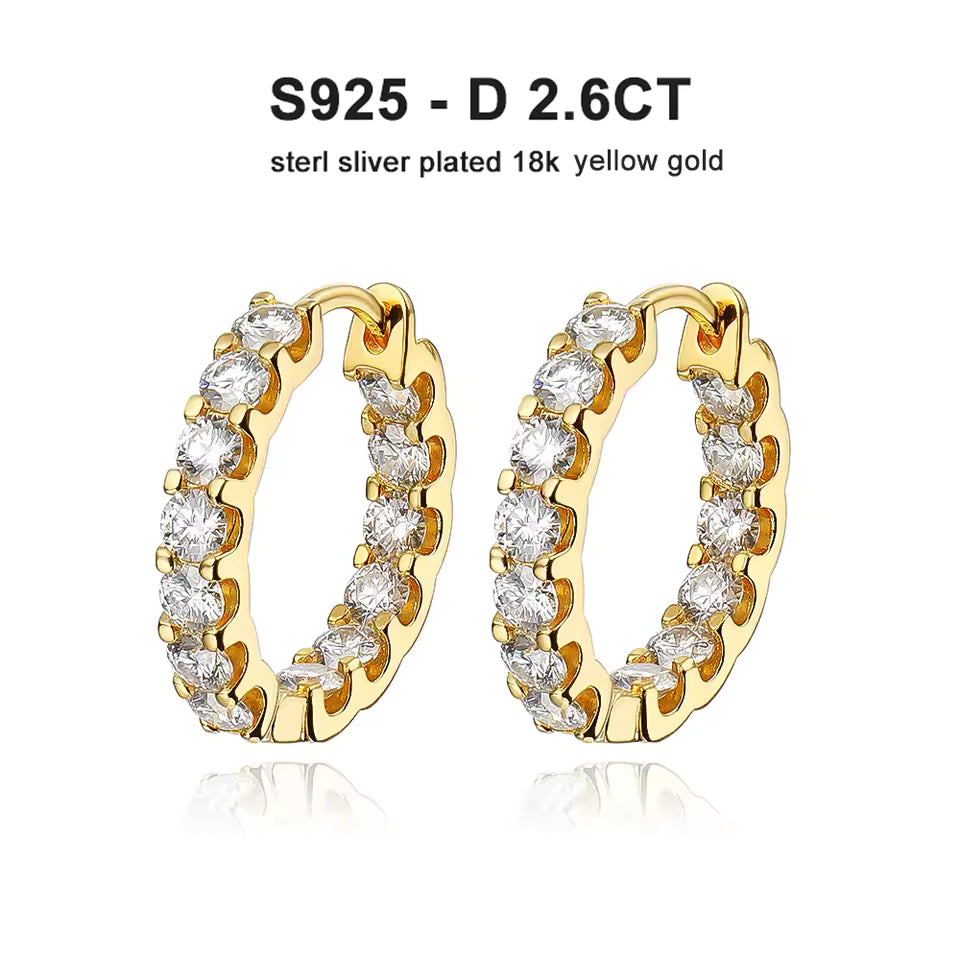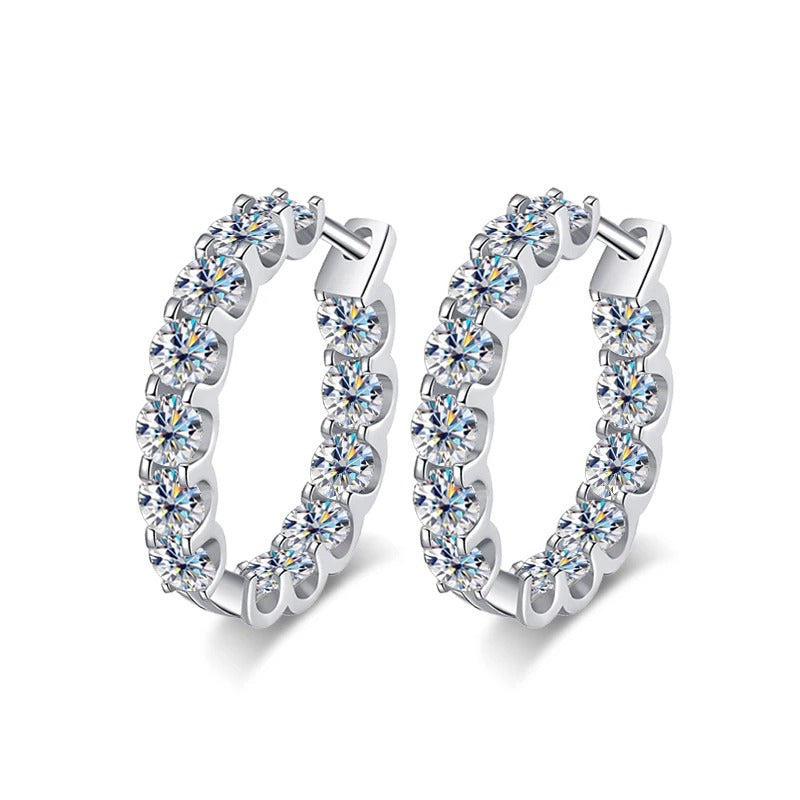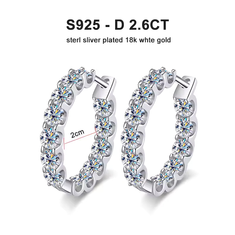 Made for those who love understated luxury, these hoops feature 2.6 carats of dazzling D-color Moissanite, crafted in 925 sterling silver and plated with 18K white gold. Whether it’s your wedding, a night out, or just another beautiful day, they’re the perfect finishing touch to your look.