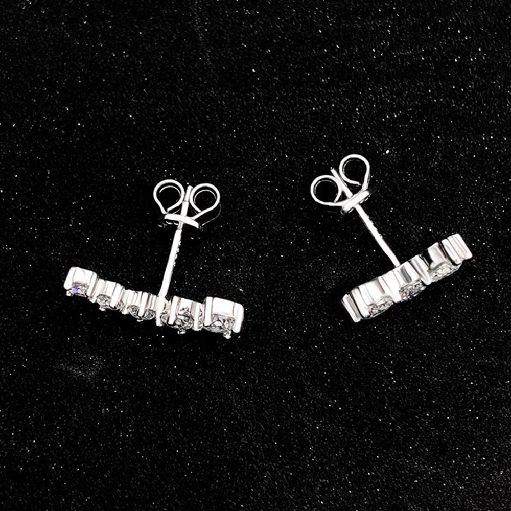 These elegant Smile Stud Earrings are crafted from solid 925 sterling silver and set with premium D color Moissanite stones that radiate a diamond-like glow. Their chic, curved design adds a playful sparkle that’s perfect for any mood, outfit, or occasion.