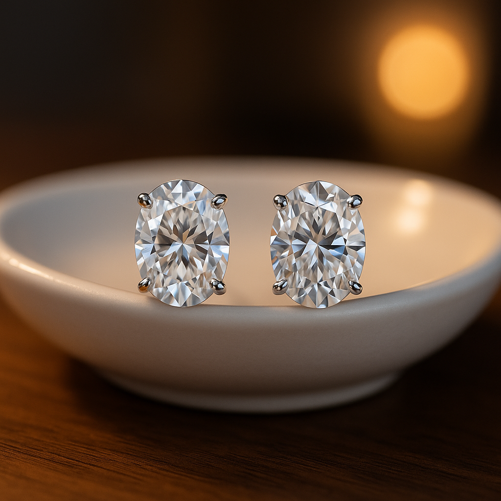 Each earring features a hand-set, oval-cut Moissanite that captures the beauty of real diamonds without the price tag. Designed in premium 925 sterling silver with 18K white or yellow gold plating, they’re safe for sensitive skin and perfect for daily wear or special events.
