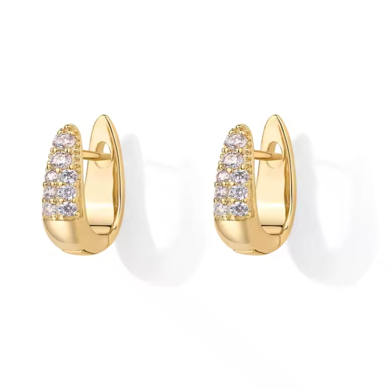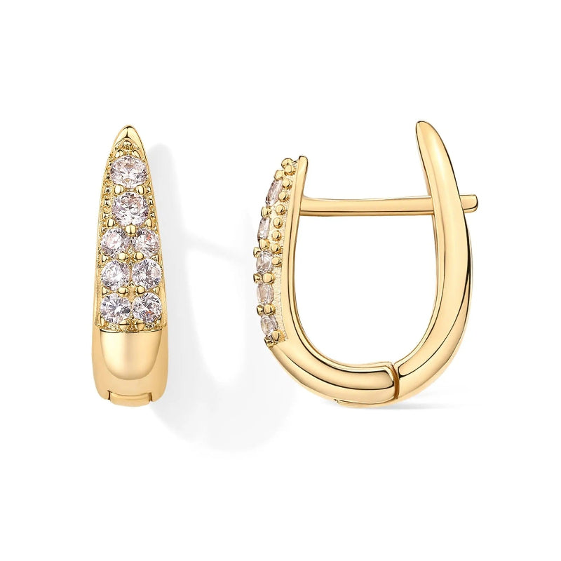 Meet your new favorite go-to hoops. These Hypoallergenic U-shaped hoop Earrings are where timeless design meets everyday sparkle. Plated in 18K gold and fitted with 925 sterling silver posts, they’re lightweight, hypoallergenic, and seriously chic. The subtle touch of cubic zirconia adds just the right amount of shine, whether you're dressing up or keeping it casual.